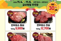 [속보] "한우농가 경영 안정" 금산군, 최대 30% 할인…무료 시식[금산=뉴시스] 조명휘 기자 = 충남 금산군은 한우 농가의 경영 안정을 4일부터 6일까지 금산축협 주차장에서 할인행사를 연다고 3일 밝혔다. 신선한 한우고기의 진미를 직접 느낄 수 있도록 준비된 한우등심을 무료로 시식할 수 있다. 안심, 등심, 채끝 등 다양한 부위를 최대 30% 할인된 가격에 만나볼 수 있다. 경기 침체와 사룟값 상승, 가격 하락으로 어려움에 처한 한우 농가를 돕기 위해 전국한우협회 금산군지부가 주관하고 금산축협이 후원하는 특별 프로그램이다. 박범인 금산군수는 "소비촉진 행사가 한우 소비에 활력을 불어넣고 ...